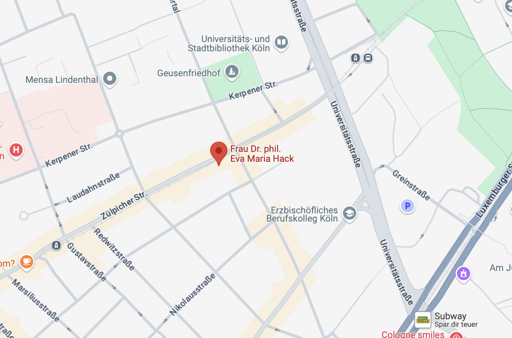 Bei Anfahrt mit Pkw: Parkplätze auf der Zülpicher Straße und in den Seitenstraßen, kostenpflichtig.